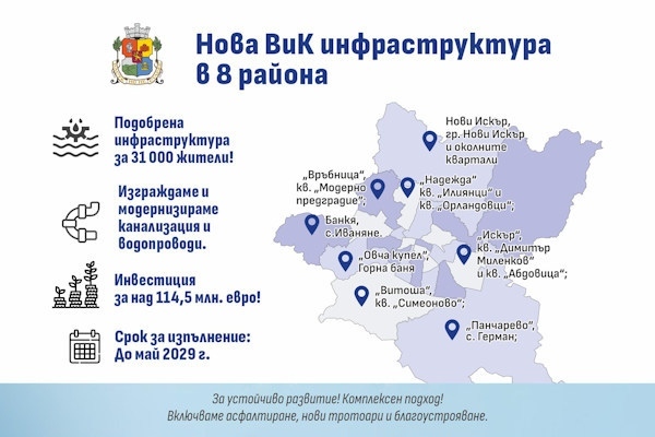 Столичната община внесе проектното предложение към Управляващия орган на Програма „Околна среда“ 2021 – 2027 след одобрение от Общинския съвет. Това е най-мащабната инвестиция във ВиК инфраструктура на София през последните години. Общата стойност на финансирането надхвърля 224 млн. лв. (114,5 млн. евро), от които безвъзмездната финансова помощ (БФП) е до 100 млн. лв. (51 млн. евро). Съфинансирането от община е над 36 млн. лв. (18,4 млн. евро) и допълнително около 89 млн. лв. (45,5 млн. евро), свързано с дейности, които общината ще инвестира в обновяване на градската среда.