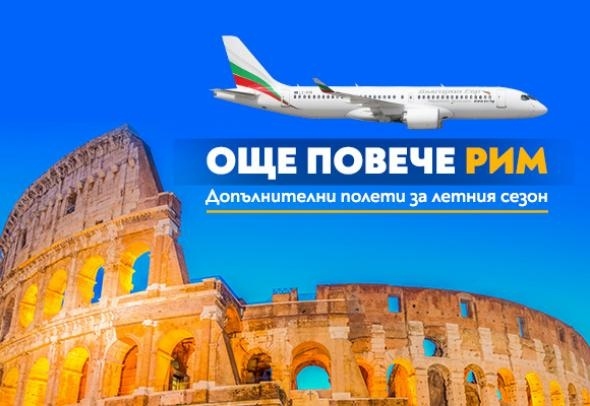 Националният авиопревозвач обявява още една допълнителна честота в неделя по линията София – Рим – София през летния сезон на 2026 година. Считано от 29 март новата честота ще се изпълнява с полет FB 449, който ще излита от София в 14:50 часа, а обратният полет FB 450 от Рим е планиран за 16:50 часа местно време. По този начин, от март до октомври 2026 г., пътниците на „България Еър“ ще могат да пътуват до италианската столица четири пъти седмично – във вторник, четвъртък, събота и неделя.