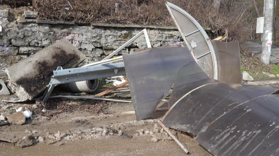 Земна маса и скални отломки се свлякоха върху автобусна спирка във Велико Търново.