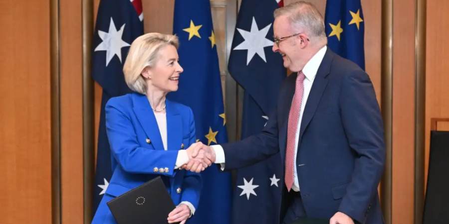 ЕС и Австралия подписаха широкообхватно споразумение за свободна търговия - кулминация на осем години преговори. Чрез него ще отпаднат 99% от митата на европейски стоки за австралийския пазар, пише БНТ.
